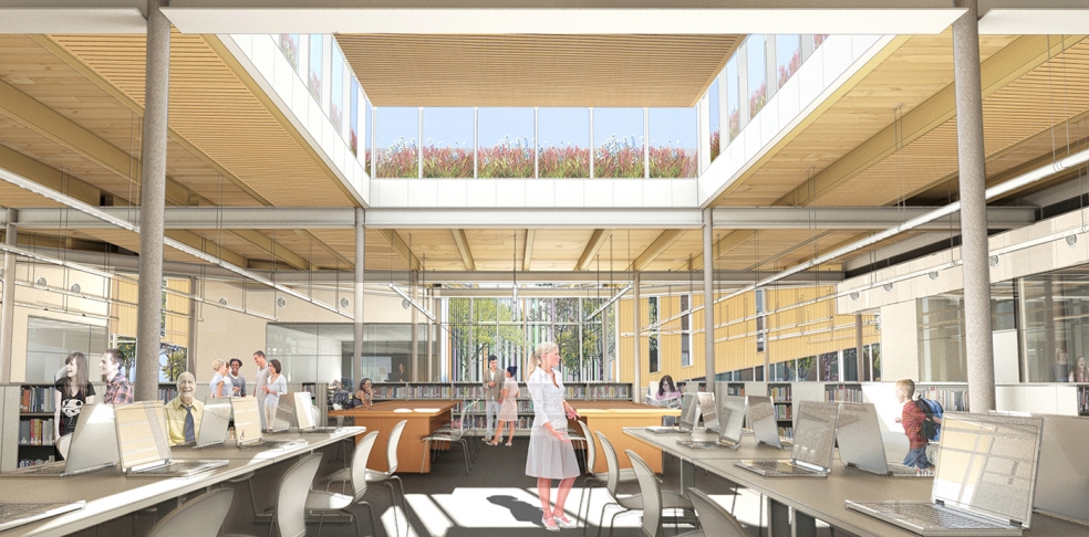 İçeri giren bireylere aydınlık, ferah ve misafirperver bir atmosfer sunan Albion Bölge Kütüphanesi, içerisinde bilgisayar öğrenim alanı, çocuk oyun ve eğlence alanı, dijital inovasyon alanı gibi çeşitli sosyal bölgeler bulundurmaktadır. Kütüphanelerin sadece kitap okuma yeri olduğu düşüncesini tamamen değiştiren yeşil çatılı kütüphane sahip olduğu ileri teknolojik sistemlerle de dikkat çekmektedir. Yenilikçi ve sürdürülebilir olan bu teknolojiler Albion Bölge Kütüphanesi’ni her anlamda diğerlerinden farklı kılmaktadır.